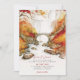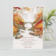 O Convite para casamentos outono apresenta árvores de queda de aquarela e uma ponte de pedra velha olhando sobre um rio e caindo cheia de pedras.