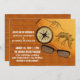 Convite para Casamento de Dinossauro Aventura com uma bússola antiga, um par de óculos, brontossauros e esqueletos de dinossauro de stegossauro desenhados num pedaço de papel e uma madeira parece um fundo de arte digital. Este legal convite de casamento é perfeito para uma aventura arqueológica ou um casamento temático de museu. Fácil de personalizar, simplesmente adicione seus detalhes de casamento. Clique em "Personalizar" para encontrar mais opções de personalização.