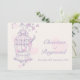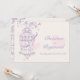 casal de pássaros bonitos em desenho gráfico de linhas de uma gaiola de pássaros aberta pendurada numa primavera com corações. design de casamento moderno e fascinante, parte do conjunto de papéis de carta românticos da gaiola de pássaros. Bonito pastel fica roxo e rosa suave em uma cor de fundo creme. Edite este convite com seu próprio nome, datas e palavras. Desenho exclusivo e design por Sarah Trett.