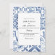 Este convite para o casamento é inspirado pelos azulejos azuis e brancos avistados em cidades mediterrânicas através da Espanha, Itália e Grécias.