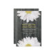 Um simples convite de casamento com margaridas a espreitar de cima e de baixo. O fundo é lenha. Personalize o texto correspondente no centro com detalhes do seu casamento. O lado oposto apresenta um plano de fundo de madeira de casca. Personalize com os nomes da noiva e noiva sobre o monograma. Papel Reciclado. A redação é da noiva e do noivo junto com seus pais.