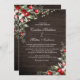 Este folheto romântico elegante apresenta folhas de cor-d-água verde e bagas selvagens vermelhas brilhantes sobre fundo de madeira, textos tendenciosos manuscritos com luzes de cordas quentes. O reverso deste convite é de madeira com galhos florestais verdes. Aproveite.