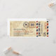 Um convite de casamento inspirado no cartão de embarque em tons de marrom claro, azul marinho e vermelho escuro. Personalização com seus nomes e informações de casamento!