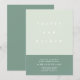 Convite moderno minimalista de casamento com tipografia ousada e um belo esquema de cor verde da casa da moeda. Personalize seus detalhes e altere as cores na opção "Personalizar mais".