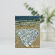 Este convite de casamento de destino divertido tem um calor numa praia feito de rochas e pedras. O fundo tem um simples fundo azul com escrevendo branco, detalhando as informações da ocasião especial.