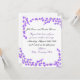 Roxo é a cor da paixão e realeza. Um design adorável com flores roxas minúsculas acentuadas por ramos finos. Personalize com as informações do casamento, conforme desejado.