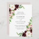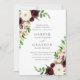 Nosso convite para o casamento Blush Romance rodeia os detalhes do seu dia de casamento com grupos de flores de aquarela em marfim, rosa-pincel e marsala-burgundy, com uma exuberante folhagem botânica verde. Este design elegante acomoda nomes mais longos ou nomes do meio. Visite nossa coleção Blush Romance para vários estilos alternativos e peças correspondentes.