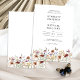Convite para Casamento de Boho Branco. Este convite de casamento na moda e elegante apresenta lindas flores silvestres de cor d'água pintadas à mão, organizadas como um adorável quadro inferior perfeito para primavera, verão ou casamentos outono. Encontre itens correspondentes na Coleção de Casamentos de Flores Selvagens de Branca.