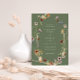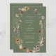 Convite para Casamento de Boho Verde. Este convite de casamento na moda e elegante apresenta lindas flores silvestres de cor d'água pintadas manualmente, organizadas como uma bela coroa perfeita para primavera, verão ou casamentos outono. Encontre itens correspondentes na Coleção de Casamento de Bóvora Verde Sage.