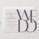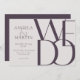 Os convites para casamento simples, mas ousados, de 7 x 5" contêm as palavras, "Nós fazemos", em letras de beringela sobredimensionadas, em um fundo de beringela leve, com texto de titular de lugar editável para beringelas para os nomes dos primeiros casais de casamento, data, hora, local, endereço de local com a mensagem na parte inferior, "recepção a seguir."