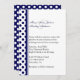 Convite de casamento na moda feito em branco, com bolinhas azuis marinhos e listras, no lado esquerdo do cartão. A parte de trás do convite é azul marinho sólido com bolinhas brancas. O texto azul preto e marinho está alinhado no lado esquerdo e é totalmente personalizável e pronto para personalizar seu dia especial.