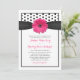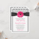 Margarida rosa de gerbera com bolinhas negra e branca, convite para o casamento da fita preta. É fácil personalizar o texto. Para alterar o texto, use as opções de personalização. Para alterações de texto mais abrangentes, incluindo alterações na fonte, cor da fonte, tamanho da fonte ou posicionamento do texto, use a opção personalizá-la. Com mudanças no texto, essa design de flores de margarida-chica e de gerência-retrora também faria um convite muito bom para muitas outras ocasiões especiais. Lembrete do 50 e da década de 60 (1950, 1960). NOTA: este é um design impresso plano sem nenhum embelezamento em relevo ou em 3D.