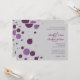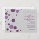 Este convite de casamento para na moda apresenta tonalidades de cores roxas e lavandas representando bolinhas que correm ao longo de um dos lados do convite e um fundo de cinza ou prata (com opção de papel metálico) com os detalhes do convite de casamento ao longo do outro. Este convite para crianças é perfeito para noivas que procuram um pouco de estilo legal para o casamento! Verifique meu compro para RSVPs Correspondentes!