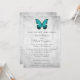 Elevem seu casamento com o tema da borboleta com este Convite para Casamento da Borboleta Teal, projetado para cativar. Uma borboleta vibrante dança contra um fundo verde, misturando design feminina com uma escrita elegante e a tipografia moderna. O esquema simples deste convite mostra os detalhes do seu casamento sem esforço. Este convite personalizável é ideal para a noiva e o noivo que quer convidar seus convidados com um conjunto elegante de papelaria de casamento de borboletas.
