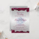 Convites para Casamento de Borgonha e Prata. A frente deste convite está a Burgundy Marble e Silver Accent Border, no topo e no fim do convite de Casamento, com um fundo prateado e um belo rosa no centro do convite. No centro do convite está o convite para participar, evento, pessoa a ser honrada, nomes de noivas e noivos, data e hora, detalhes do local, RSVP e detalhes do Registro escritos em uma mistura de tipografia serif clássica e escrita elegante em forma de letra leve. O fundo do convite é um fundo de prata com a noiva e as iniciais do noivo no centro do convite no isqueiro cor burgundy na frente do convite. Você pode alterar o texto, a disposição, as fontes, as cores, o tamanho e muito mais usando a caixa de tabulação à direita do design, que diz "Personalizar". Perfeito para qualquer época do ano Convite de Casamento. Envie-me o botão abaixo se precisar de ajuda para personalizar este cartão. Observe que só posso modificar antes de comprar, após a compra, ela não pode ser modificada. Obrigado por visitar a loja, mais designs chegando em breve.