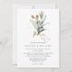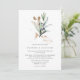 Este Convite para Casamento do Branch de Ouros Modernos - apresenta galhos de azevinho e ouro, gotas de ouro e formas geométricas com letra elegante. O reverso deste convite de casamento é elegante verde-oliva escuro.