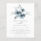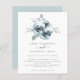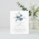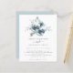 Convite para casamento de Buquês Florais de Natal moderno. Um alternativo de 4,5 pol x 5,6 pol com preço inferior. Disponível em um STOCK DE CARTÃO SEMI-GLOSS 110 lb, que é a opção padrão (mais espesso para convites), OU um STOCK de PAPEL THINNER FINISH 80 lb FINISH (ideal para gabinetes). Os envelopes são um extra opcional e são ligeiramente maiores que o tamanho da placa. Uma chaleira Natal e florais azuis em pó e buquê foliar estão acima do texto elegante centrado abaixo. Personalize facilmente o texto para seus próprios detalhes.