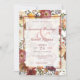 Este elegante, porém simples design apresenta um fundo de rosas e flores creme, amarelo, argila e marsala. O texto é exibido em um fundo transparente branco suave para exibir a design atrás dele. Este cartão faz parte do Fall Watercolor Buquês Invitation Wedding Suite de cartas criadas pela Simply Farmhouse Press.