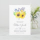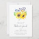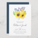Os convites para casamentos florais elegantes russos apresentam uma postura de girassóis amarelados, marinhos e púrpuros, e folhas verdes vibrantes. Personalize com seus detalhes de casamento abaixo em uma mistura de blocos, serifas e tipos de caligrafia manuscritos.