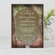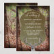 Cena de floresta com folhas de outono no chão e cheio de árvores. Personalize o convite para atender às suas necessidades pessoais para o casamento rústico perfeito.