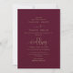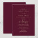 Este convite romântico de casamento apresenta caligrafia rica e burgundy com flores elegantes — perfeita para o outono, formal ou casamentos clássicos. Os tons profundos e o roteiro gracioso adicionam calor e sofisticação ao seu dia especial. Totalmente personalizável com o seu texto.