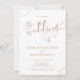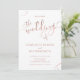 Apresentando caligrafia de na moda, este convite para casamento em ouro rosa e branco pode ser facilmente personalizado com todas as informações sobre seu dia especial de casamento.