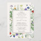 Este convite de casamento apresenta uma camada de água de flor silvestre. Personalize com suas informações ou clique em "Clique para personalizar mais" para editar estilos de fonte, tamanho e cores.