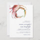 O convite de casamento chic costeiro apresenta uma ilustração de caranguejo vermelho-d-água no canto superior esquerdo, com os detalhes de seu casamento em azul-marinho clássico. Perfeito para praia, verão, ou casamentos náuticos, esses convites de casamento em estilo costeiro invertem para azul marinho sólido.