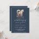 Cavalo Elegante Desenhou Convite De Casamento De Carruagem. Junte-se a nós para uma celebração elegante enquanto trocamos votos cercados pelas matizes ricas de um casamento romântico. Nosso casamento vai apresentar uma bela mistura de uma carruagem desenhada por um belo cavalo branco em cores românticas azuis, todas acentuadas pelo charme eterno da caligrafia da escrita. Assuma o calor e a elegância da estação conosco neste dia especial.