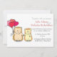 Convite de casamento branco de fundo com desenho animado de casal de ouriço bonitinho segurando balões em forma de coração. Personalizável para detalhes do casamento.