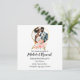 O convite personalizável para o casamento mostra a arte aquática de um belo casal de pele castanha como noiva e noiva. Acentos florais, todo texto disponível para personalização, este convite melanatado tem um esquema de cor de pêssego e coral.