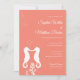 Não é segredo que o verão é a época mais popular para se casar. Garota... faça com estilo!! Então, quando se trata de seu casamento à beira-mar, mantenha sua aparência divertida e coloque de volta um design colorido, como este convite para o casamento do cavalo marinho. Essa combinação de fontes modernas e guiadas com dois cavalos de mar bonitos beijando enquanto nadando faz o convite perfeito para um casamento de destino tropical. Altere tamanhos, fontes e cores para corresponder à paleta de casamento.