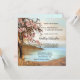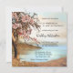 Um convite para o casamento da primavera com uma pintura de arte fina de um oceano com uma árvore florescente de cereja e borboletas em adoráveis cores rosa.