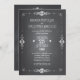 O convite de casamento popular ao estilo do quadro de comunicações é esboçado pela borda de rolagem e tem um efeito de giz. No verso, uma ilustração original de um jarro de pedreira com flores brancas de hydrangea e um coração personalizado com as iniciais da noiva e do noivo. A tipografia quêmica dá ao convite um olhar casualmente elegante. Os itens de coordenação também estão disponíveis.