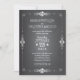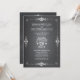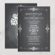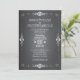 O convite de casamento popular ao estilo do quadro de comunicações é esboçado pela borda de rolagem e tem um efeito de giz. No verso, uma ilustração original de um jarro de pedreira com flores brancas de hydrangea e um coração personalizado com as iniciais da noiva e do noivo. A tipografia quêmica dá ao convite um olhar casualmente elegante. Os itens de coordenação também estão disponíveis.