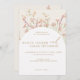Este design apresenta designs florais delicados, cores suaves e um layout agradável. Exude uma vibração romântica e rústica, perfeita para um jardim ou casamento ao ar livre. Os motivos de flor silvestre evocam a beleza natural e a simplicidade, fazer uma escolha encantadora para casais que buscam um convite caprichoso e elegante.