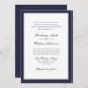 Convite de casamento azul clássico de marinho com pais da noiva e noiva listados na introdução como hospedeiros. Bloco azul marinho e texto tradicional de script dentro de uma borda azul e cinza marinho. Marinho azul de volta. Para ajustar o layout, clique em Personalizar, Editar Texto e, em seguida, clique em e arraste seções de texto para os locais desejados. Use Cntrl para selecionar e mover várias seções ao mesmo tempo.