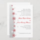 Convite de casamento para cinzas brancas em flocos de neve, de prata vermelha, apresentando uma banda ondulada em cinzas de prata com estrelas e flocos de neve elegantes vermelhos. Texto em cinza e vermelho. Um design de na moda perfeito para o seu casamento de inverno, dezembro ou Natal. Moderno e contemporâneo, mas adequado para um casamento tradicional. Esse elegante design de classe pode ser usado em outras ocasiões especiais, como noivados ou aniversários.