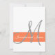 Cinza, Branco e Coral (FF7F50) Convite para Casamento com Seu Monograma e Nomes em uma design moderna simples, mas elegante. ELKE CLARKE © para MonogramGallery. Mostrado no papel branco básico