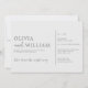 Convide os convidados para uma celebração de na moda com este convite mínimo de casamento de chic com fontes clássicas de serifa, script manual suave e um layout branco limpo com texto de cinza prateada. Com sua elegante simplicidade e design moderna, esse convite é perfeito para casamentos vinícolas, cerimônias de jardim ou assuntos contemporâneos. Totalmente personalizável com seus nomes, data, local e informações de RSVP para torná-lo exclusivamente seu.