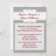 Convite de casamento com fundo de cinza e texto vermelho profundo. Bolinhas brancas em cada lado da placa de anúncio simples. Uma faixa branca no alto tem os nomes da noiva e do noivo. Personalize este modelo com suas informações.