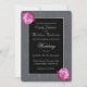 Obtenha itens adicionais da coleção: Faz parte da coleção: https://www.zazzle.com/collections/pink_rose_silver_glow_gray_monogram_wedding_suite-119710187161009610 Este é um convite para o casamento floral de rosa lindo, cativante e elegante, com uma dica de prata em fundo de cinza. O plano de fundo tem um efeito de textura parcial das luzes com um brilho suave. O texto está enquadrado em prata e pode ser totalmente personalizado.