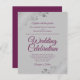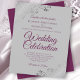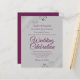 Estes convites para casamento baratos e amigáveis são a escolha perfeita para a aula, estilo e beleza num orçamento. O design apresenta o texto roxo, magenta ou colorido de uma cinza com caracóis e espirais nos cantos de folha fina prateada ornamentado. A tipografia inclui a inscrição em rico para um estilo simples e elegante. Uma maneira maravilhosa de convidar seus amigos e família para compartilhar sua alegria em seu dia especial sem quebrar o banco.
