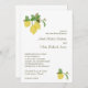 Contemporâneo e atraente convite de casamento com um tema tropical. Apresenta uma ilustração elástica com limões pendurados num ramo e algumas folhas em vários tons de verde. Este cartão é ideal para um casamento tropical ou de verão. O design é elegante, mas fresco e brilhante. Adicione seu próprio texto.