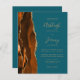 Economize o custo de imprimir e enviar cartões RSVP separados com este elegante convite de casamento de orçamento integral. A borda esquerda apresenta uma cor de água laranja queimada e ferrugem, borda agitada com brilho dourado. O texto personalizável combina manuscrito dourado, fontes em copperplate e itálico em um fundo azul lacrimogêneo. O verso fornece espaço para detalhes do casamento em um fundo de terra firme, junto com um código QR que os convidados podem digitalizar para visitar seu site e RSVP.