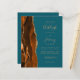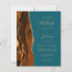 Economize o custo de imprimir e enviar cartões RSVP separados com este elegante convite de casamento de orçamento integral. A borda esquerda apresenta uma cor de água laranja queimada e ferrugem, borda agitada com brilho dourado. O texto personalizável combina manuscrito dourado, fontes em copperplate e itálico em um fundo azul lacrimogêneo. O verso fornece espaço para detalhes do casamento em um fundo de terra firme, junto com um código QR que os convidados podem digitalizar para visitar seu site e RSVP.
