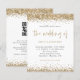 Um valor para o alternativo do ORÇAMENTO em tamanho menor de 4,5 x 5,6" de semirbrilho de 110 lbs, que é de espessura semelhante a um cartão postal (no entanto, não é adequado para uso como cartão postal). POR FAVOR, OBSERVE QUE HÁ UM convite por folha. Convite Dourado de Casamento de Código QR para Glitter. Adicione seu código QR ao seu site de casamento no verso faz com que esta seja uma opção conveniente para seus convidados para RSVP e veja todos os detalhes sem a necessidade de RSVP separado e cartões de detalhes. Uma tipografia elegante está em ouro para o título principal "O Casamento de complementar o resto do texto que você pode personalizar facilmente, com bordas de confete falho dourado no topo e no fundo e também no verso.