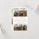 Este design moderno apresenta espaço para cinco das suas fotos favoritas, permitindo-lhe mostrar os momentos especiais que contam a sua história de amor. Junto com uma escrita manual, dizendo "O casamento de". O layout limpo e elegante é complementado por um conveniente código QR, perfeito para compartilhar seu site de casamento, detalhes de RSVP ou outras informações importantes com os convidados. No verso, há espaço para sua própria mensagem e grande foto, fazer que este convite não apenas seja uma ferramenta funcional, mas também uma manutenção.