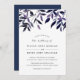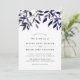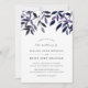 O convite elegante para casamento russo apresenta letras ricas fora de preto em blocos quicos e itálico com sotaques caligraficos, tostados por pulverizações de folhagem de cascata de aquarela em tons escuros de joias azuis e roxo de ameixa. Convites inverso a azul marinho sólido.