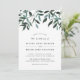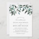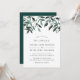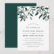 O convite de casamento russo elegante apresenta letras ricas fora do preto em blocos quicos e itálico com sotaques caligraficos, tocados por pulverizações de folhagem aquosa em tons de sábio e verde florestal. Convites inverso a verde escuro sólido.